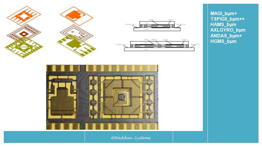 This type of sensors are made by etching off material from a substrate. The above picture shows Waddan's Axlgyro machined out of <100> silicon substrate, and is sandwiched between two Pyrex glass plates.