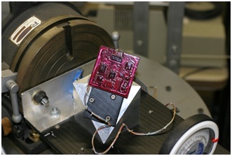 Depending upon the type of testing required, special fixtures are fabricated. Special connectors with pogo pins are usually employed to make temporary contact with the sensor pads designed for electrical interface. Some sensors can be electrically or otherwise stimulated to observe and measure physical movements under a microscope. Special electronics fixtures are designed for exciting the sensing element and measurements, usually interfaced with a data collecting laptop. The above phtograph shows a Testing Fixture for Rotary Gyro and accel combo device.